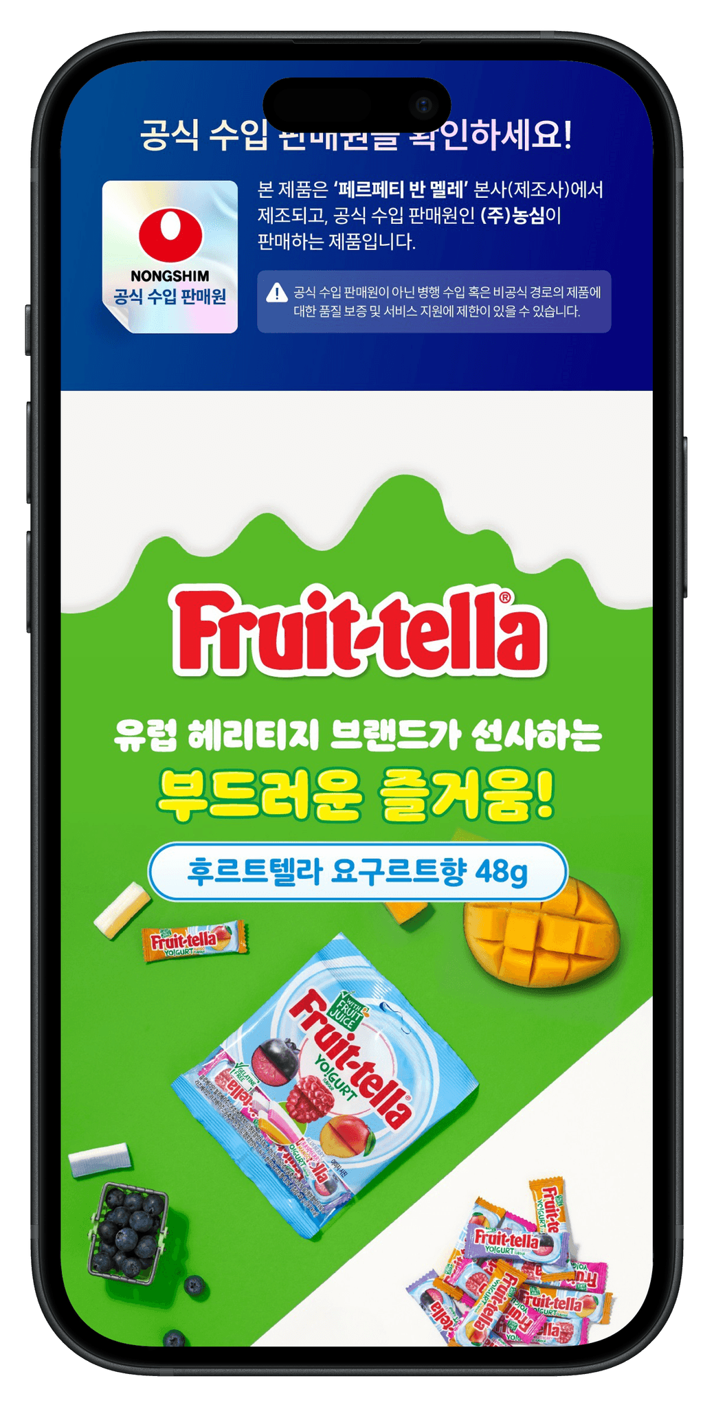 후르트텔라의 자연 원물의 달콤함을 전달한 상세페이지